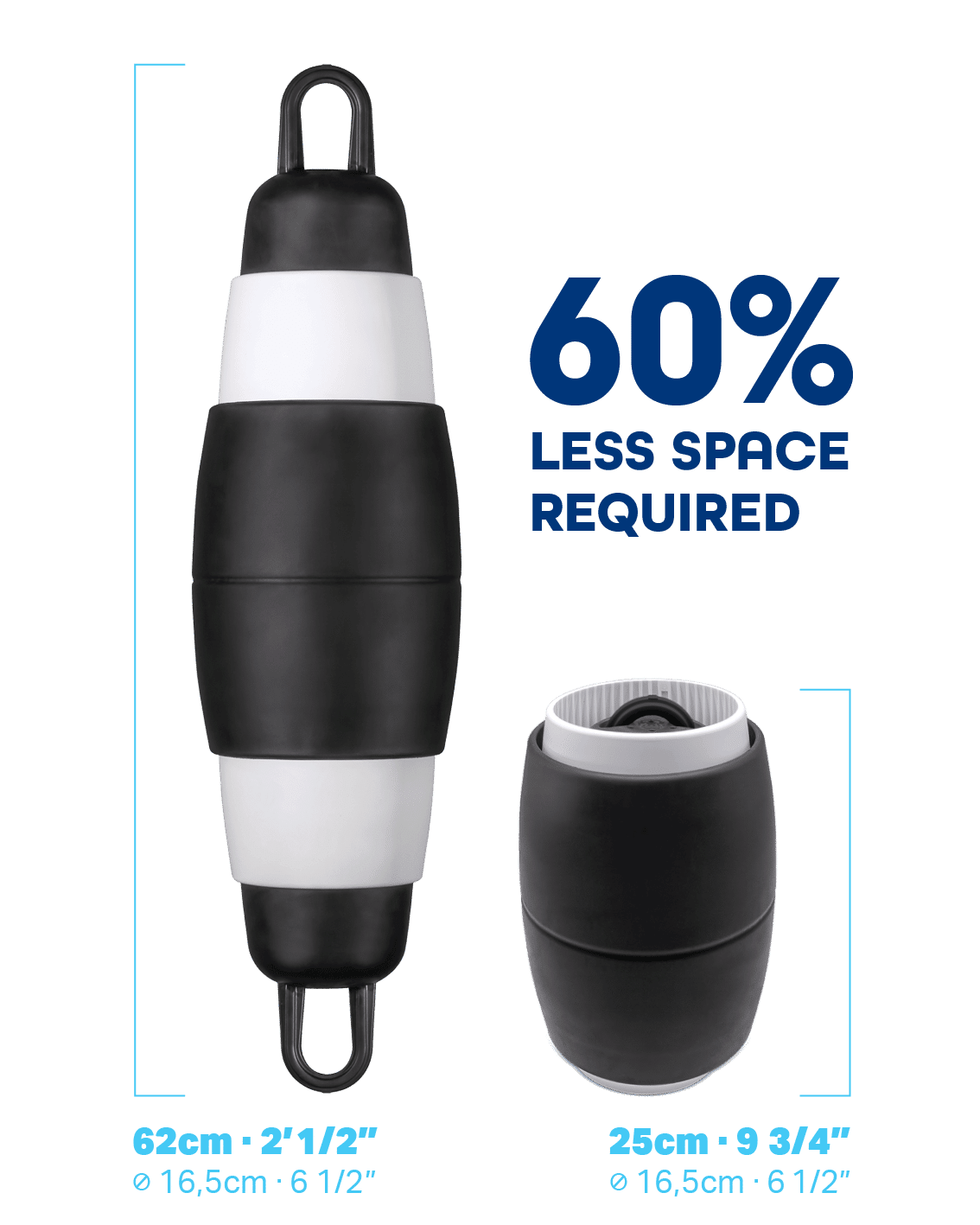 La idea surgió de una clara necesidad: ¡más espacio en el barco! La posibilidad de guardar las defensas del barco rápida y fácilmente es un auténtico lujo en el barco.